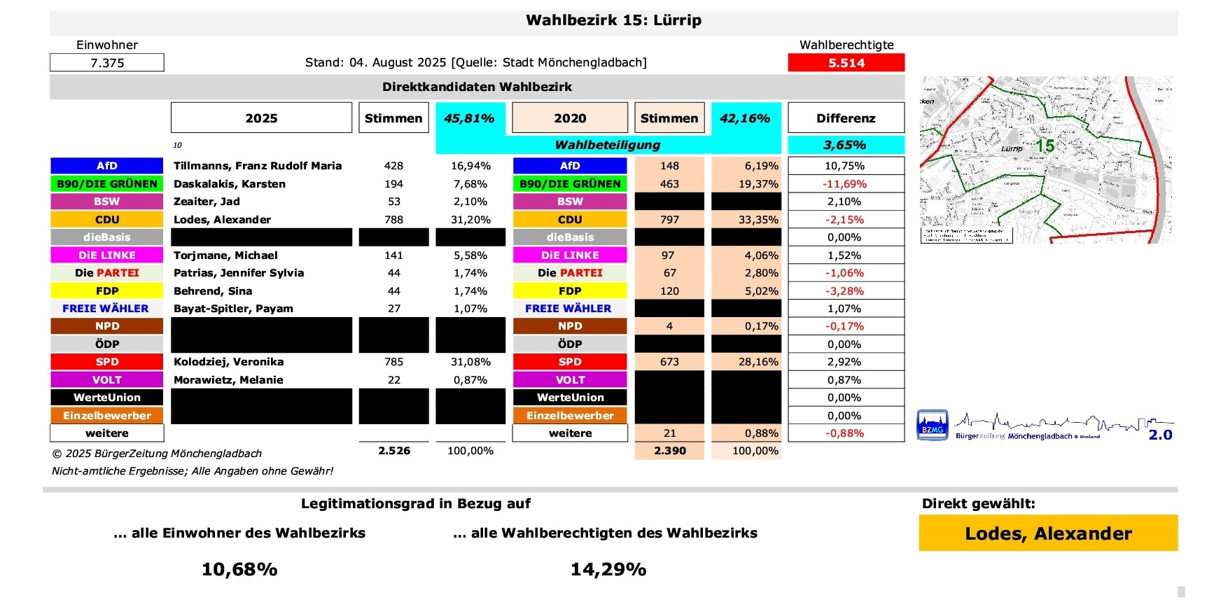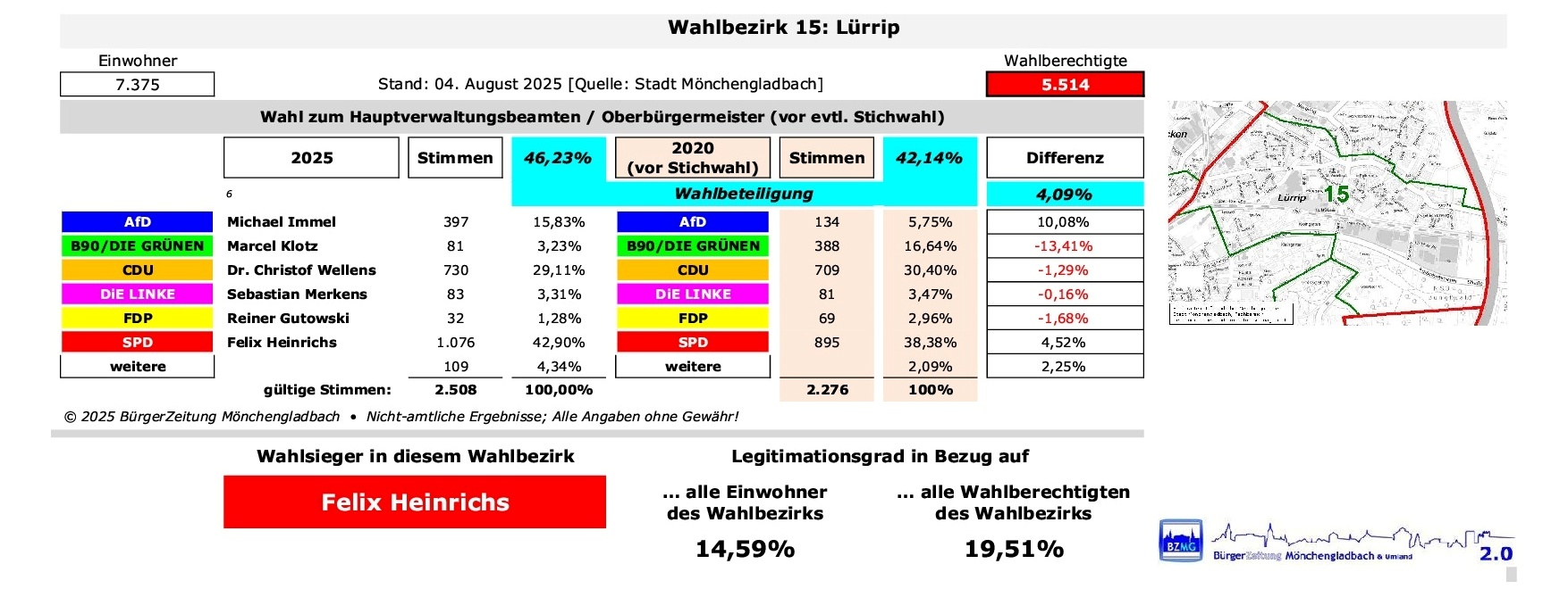 Vorlesen So haben die Wähler in diesem Wahlbezirk entschieden: … und gesondert mittels „Listen-Wahl“ über Zusammensetzung der Bezirksvertretung OST