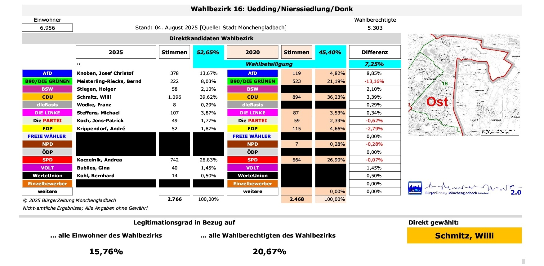 Vorlesen So haben die Wähler in diesem Wahlbezirk entschieden: … und gesondert mittels „Listen-Wahl“ über Zusammensetzung der Bezirksvertretung OST